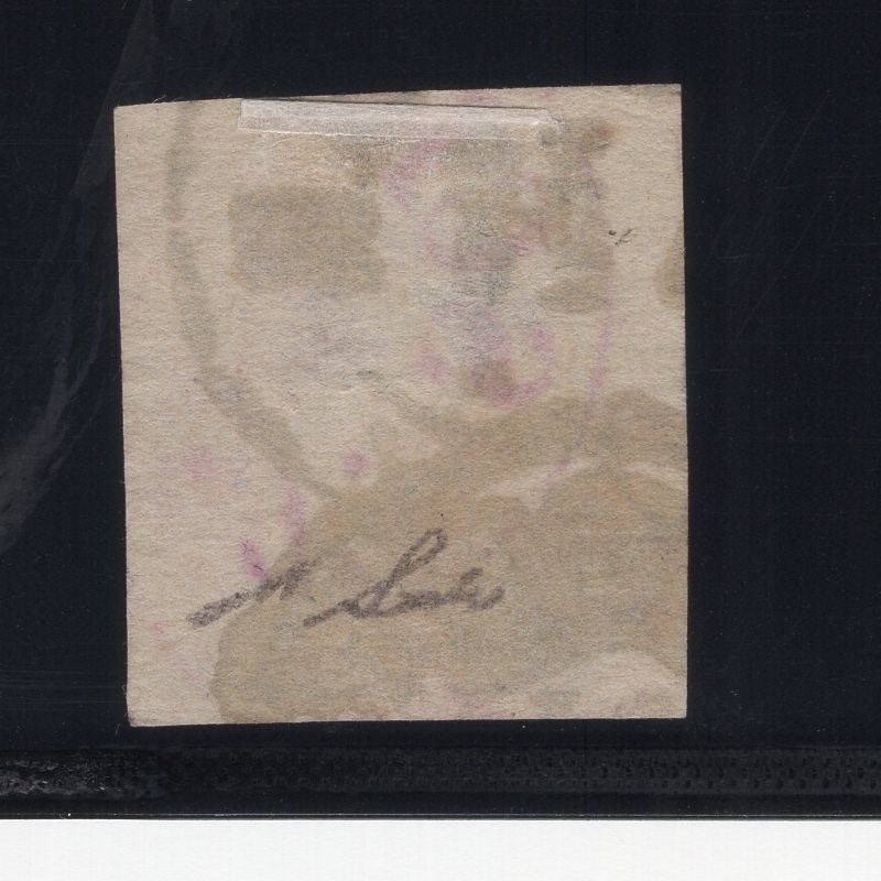 4kr color variety gray blue Type D Scott # 34 postally used with thin Scott value without coast certification $175.00, Card certification by Mr. Mehrdad Sadri.