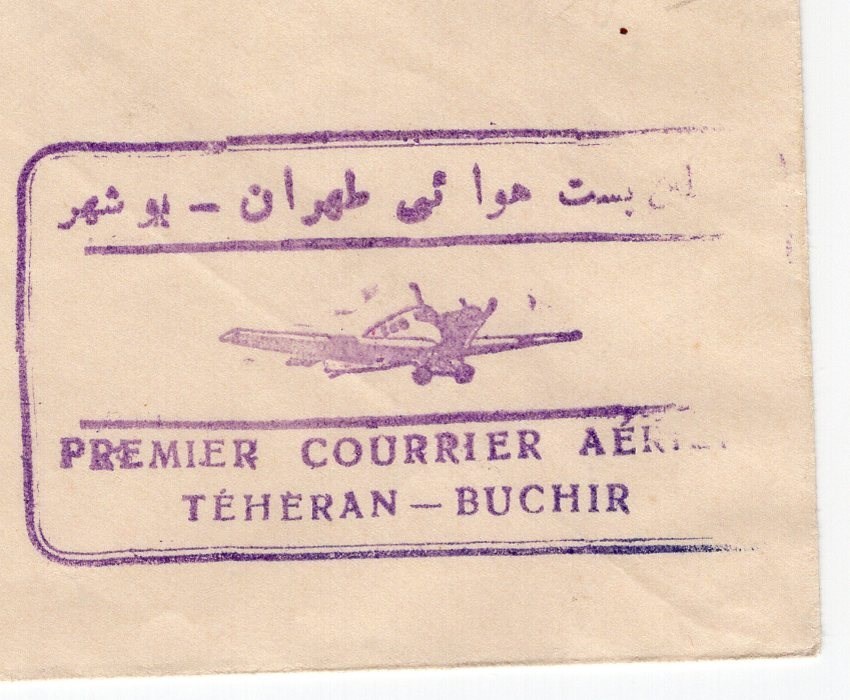 Scott # 740 strip 3, C17 on cachet first flight cover from Tehran to Bouchire.