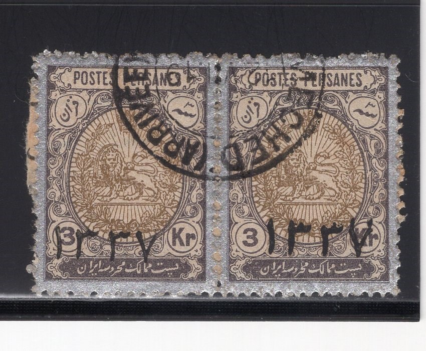 Iran 1918 Scott # 604 Pair Used Piece SCV $90 Signed