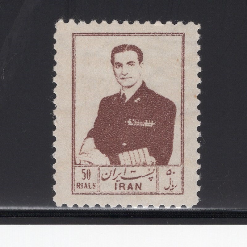 50 Rials red brown key value of Shah 6th set Scott # 1036 mint lightly hinged with printing disturb gum Scott value for hinged $175.00