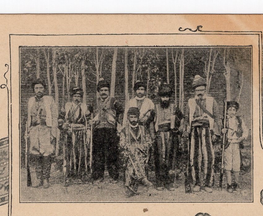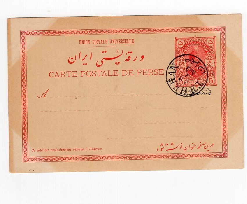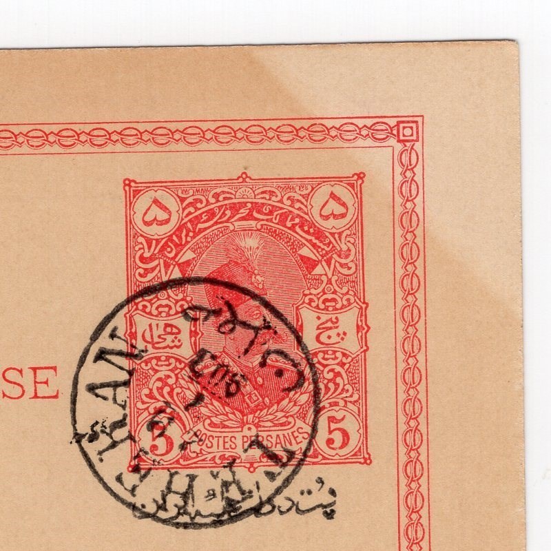 5ch red with Imperial post Iran overprint picture postal card showing Kurdish woman and Kurd in Salmas cancelled by Favor Tehran postmark with age discoloring.