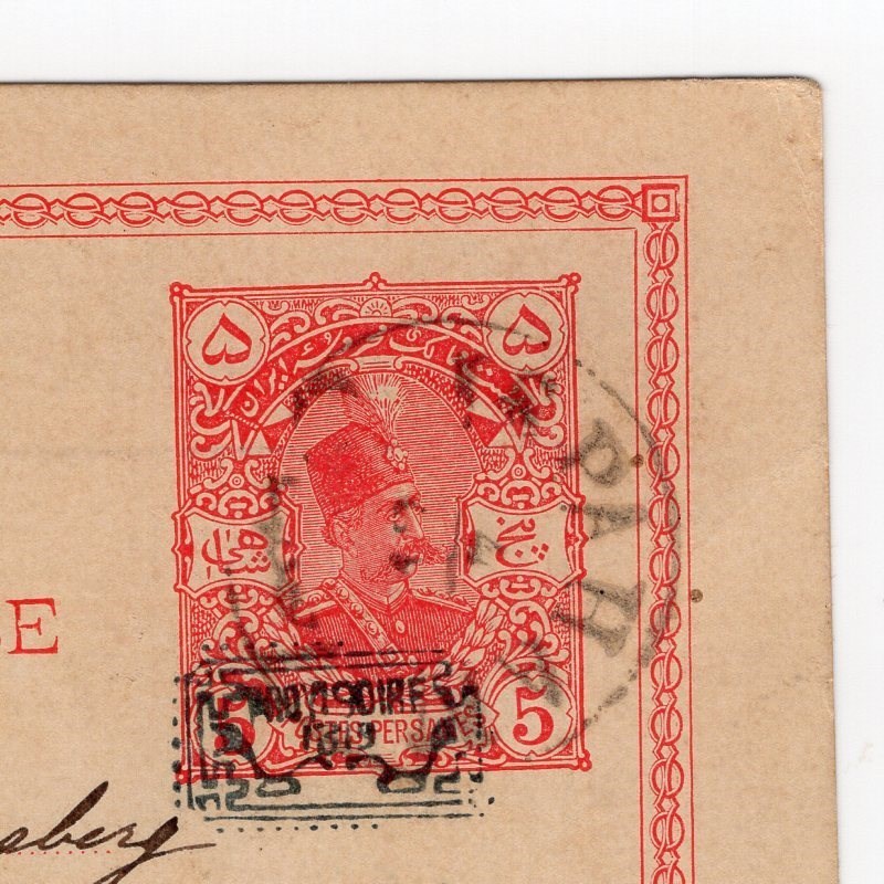 5ch red with Provisoire 1319 overprint picture postal card showing Jewish girl in black color mailed from Ispahan to Berlin and forwarded.