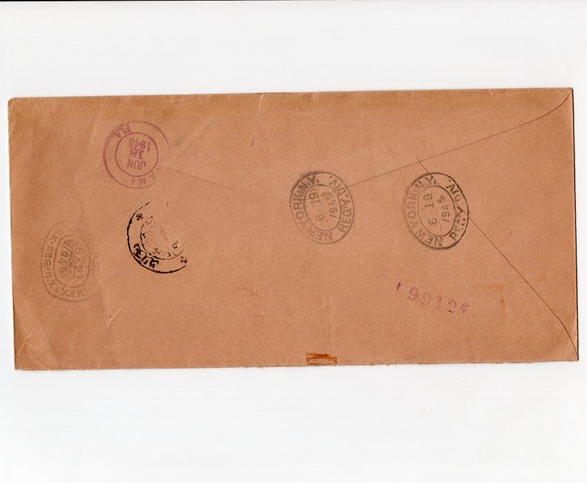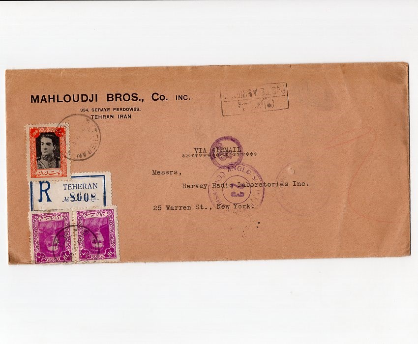 Scott # 897 pair with perf damage, 903 on registered airmail cover from Tehran to New York via Baghdad and Miami, with two different Anglo-Soviet-Persian censor.
