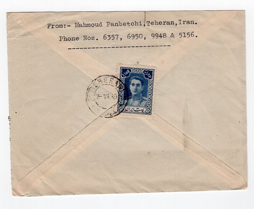 Scott # 895 on cover from Tehran with two different readable Anglo-Soviet-Persian censor # 8 and 12.