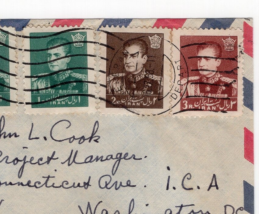 Scott # 1110x2, 1111x2, 1113, 1115 on an airmail cover Tehran to Washington DC.