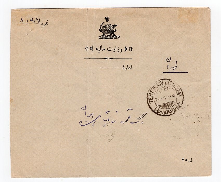 Iran 1926 Ministry Finance Cachet Cover