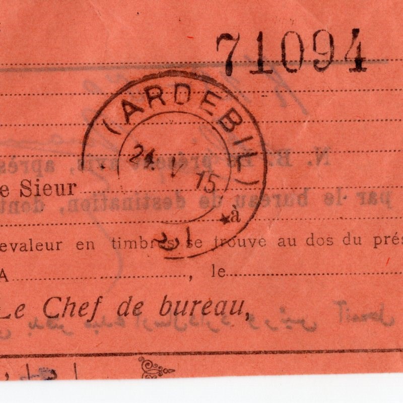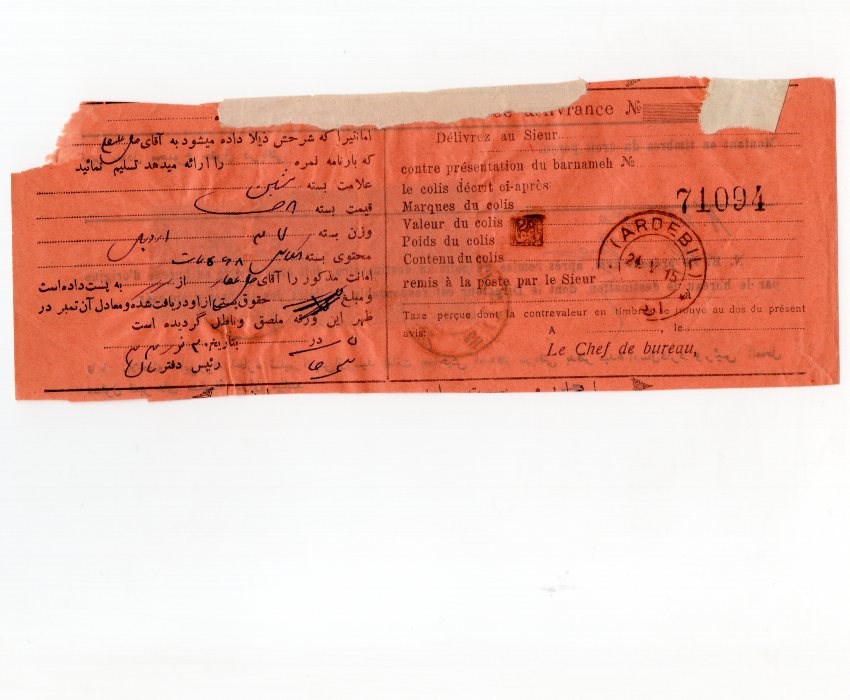 Iran 1915 Colis Postaux 3 Color Waybill Permit
