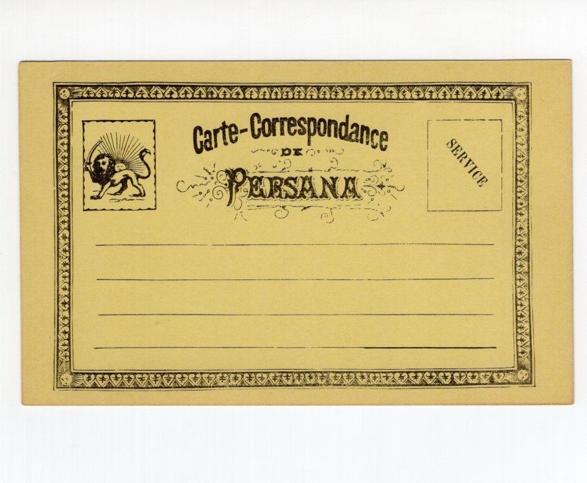 Persana postal card yellow on thick paper with Type II Service overprint mint in excellent condition.