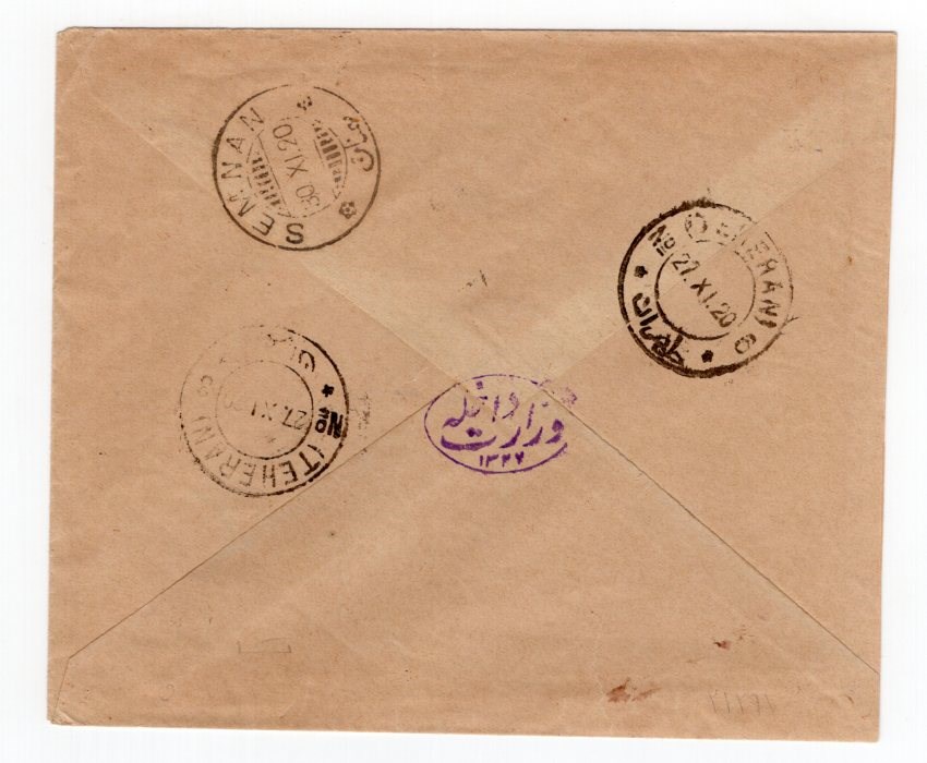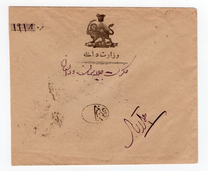 Iran 1920 Cachet Ministry Free Mail Majanie