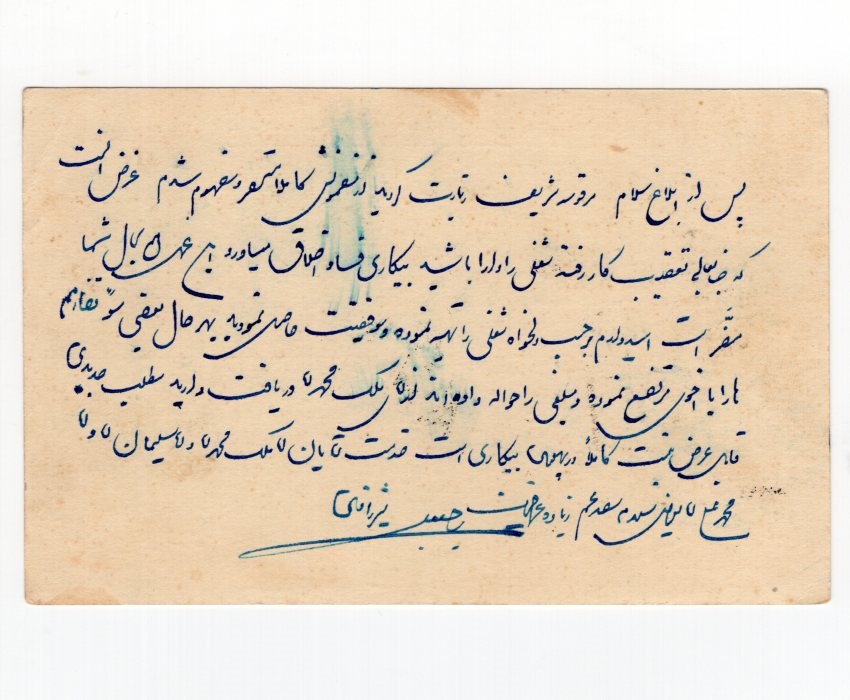 2ch Reza Shah coronation postal card Persiphila # PC47 mailed from Bender Pahlavi to Tehran with boxed deliver time # 9 Persi value for the card from $35.00