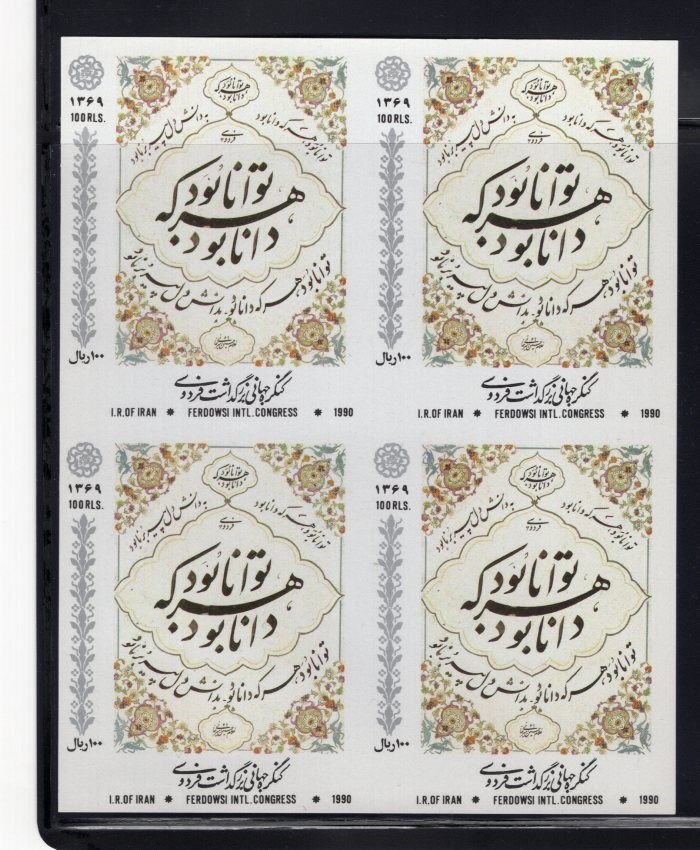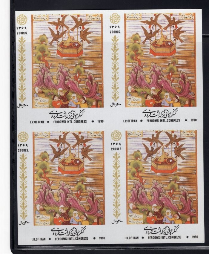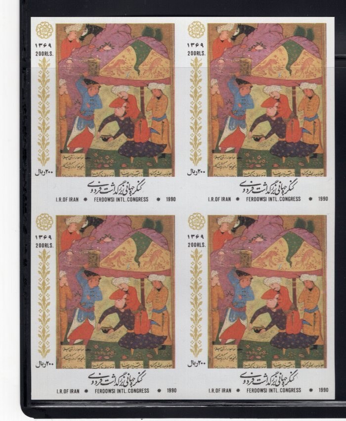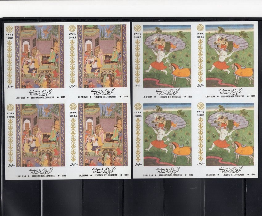 Complete imperf blocks four set 16 conference on epic poem Book of Kings by Ferdowsi Scott # 2421-36 mint never hinged Scott value $250.00