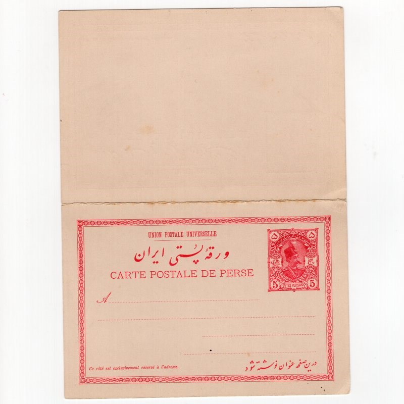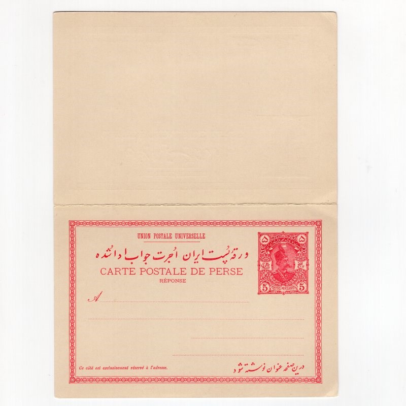 Iran 1896 Intact Paid Reply PC Mint PV $125