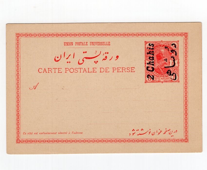 2ch on 5ch red Muzaffer-ed Din Shah postal card Persiphila # PC25 mint in good condition Persi value $75.00