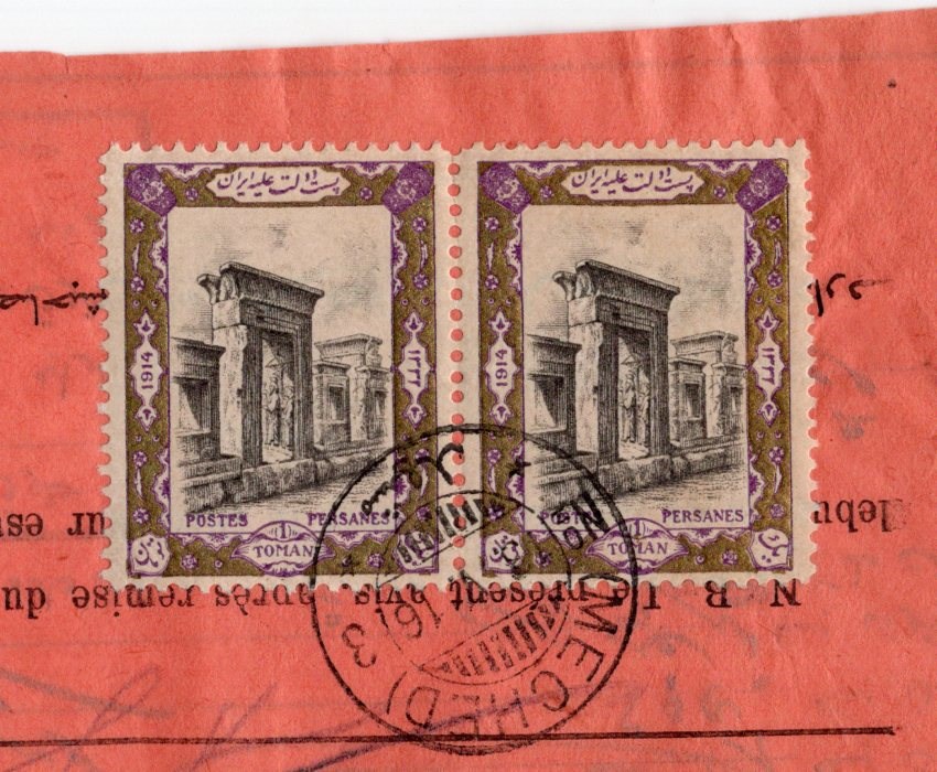 Iran 1916 Coronation Pair Strip Permit Waybill