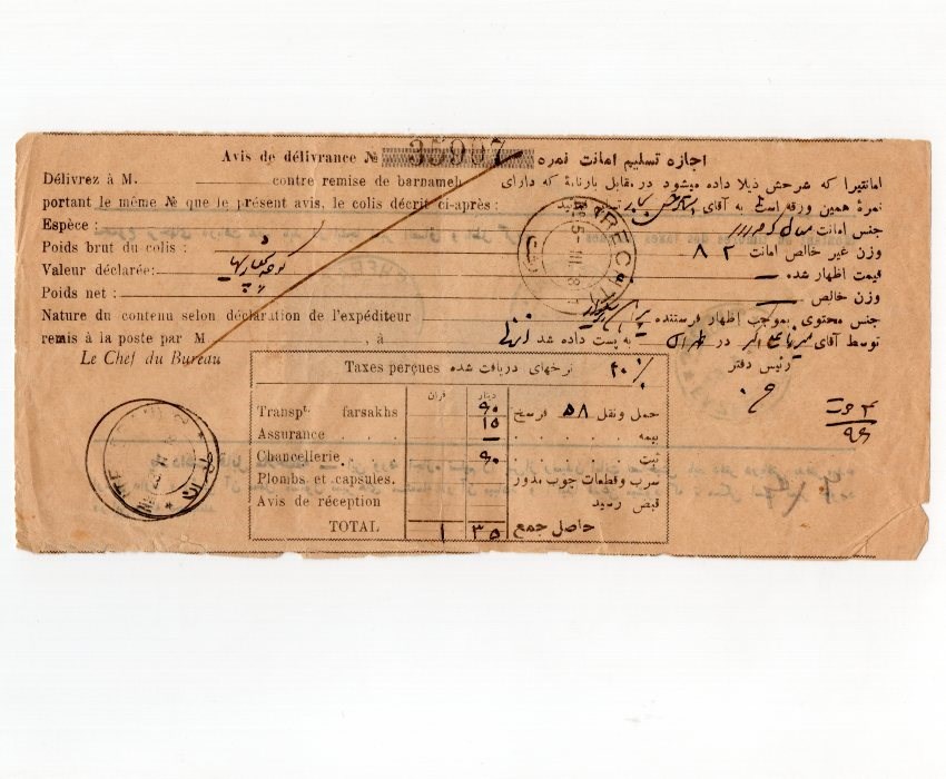 Iran 1918 Ahmadi Chahi Value Waybill Permit