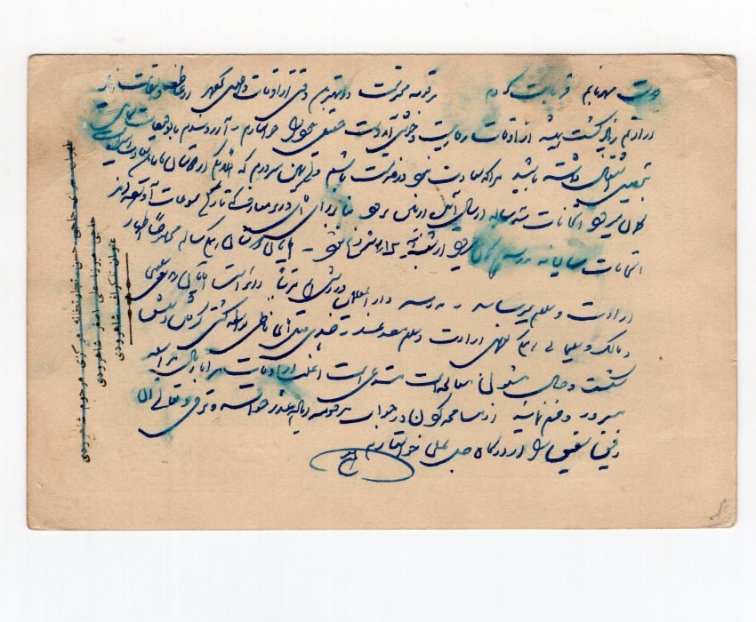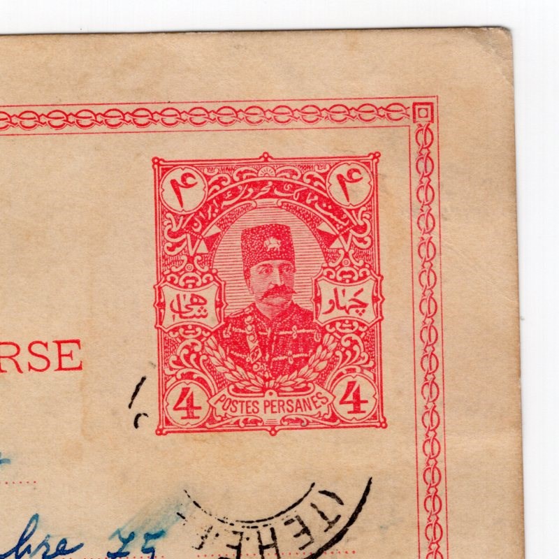 Nasser-Din Shah postal card used without postage value, one stamp removed Scott # 745 mailed from Tehran.
