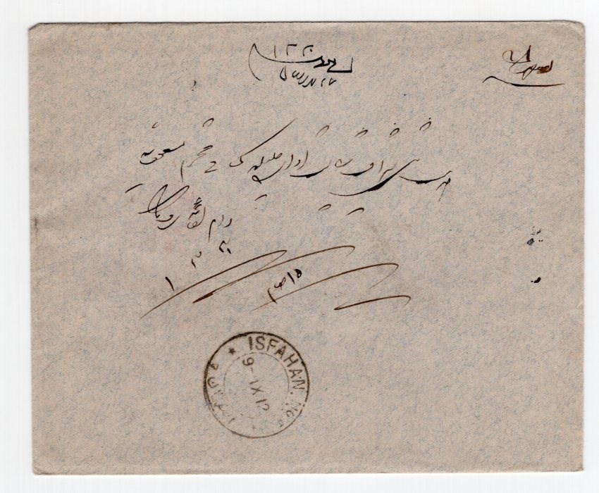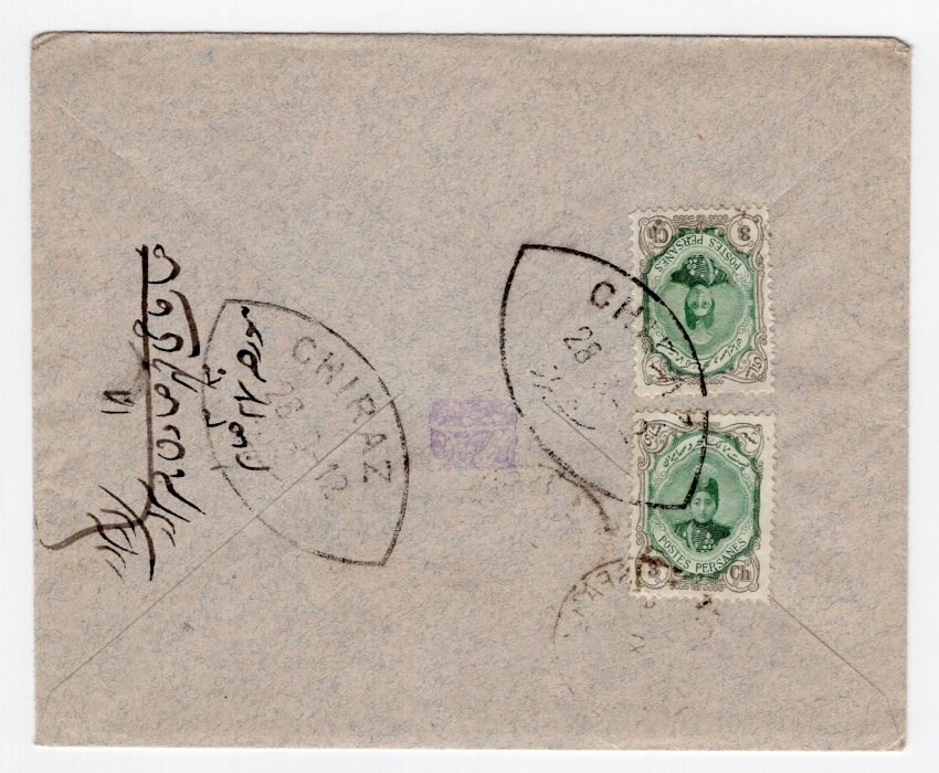 Two copies of 3ch one with small shifted center Scott # 483 on cover from Chiraz to Isfahan with orange letter.