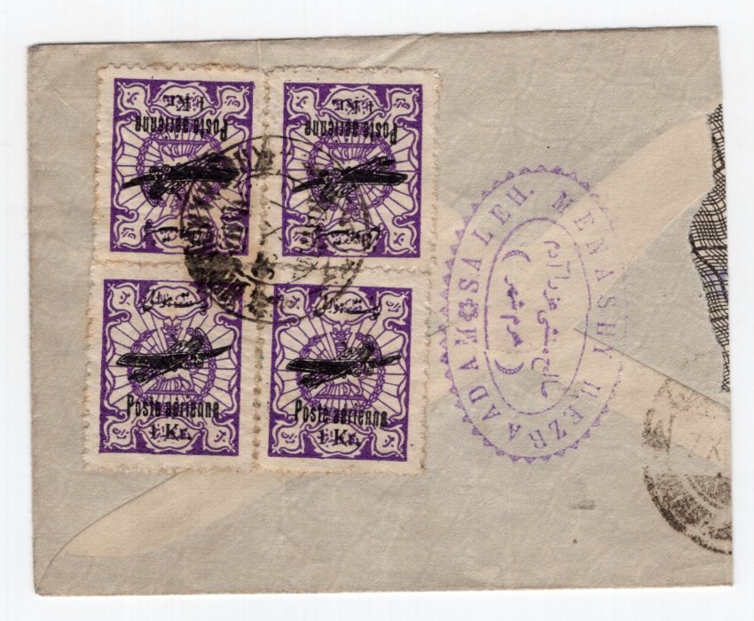 Block 4 of 1kr Scott # C26 on large part cover from Khorramchahr.