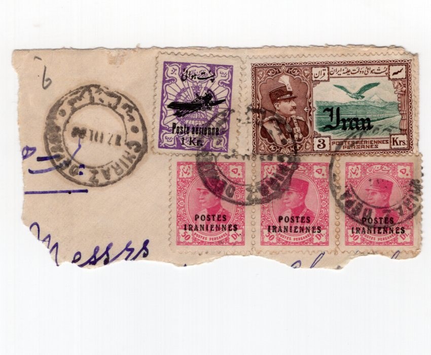 Scott # 800 strip 3, C26, C63 with shifted up center from Chiraz
