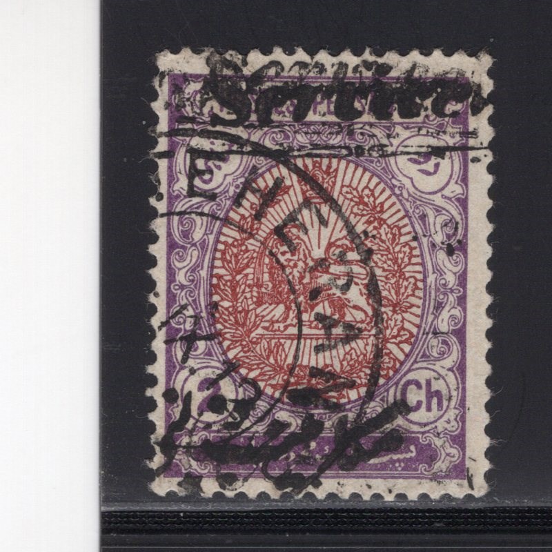 2ch coat of arms with double service overprint Scott # O32 postally used error, Signed by Mr. Mehrdad Sadri.