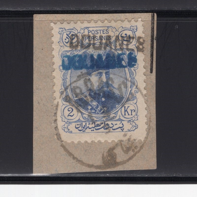 2kr ultra with double Douanes overprint in two colors postally used error on a piece with Abbassi postmark, Signed by Mr. Mehrdad Sadri.