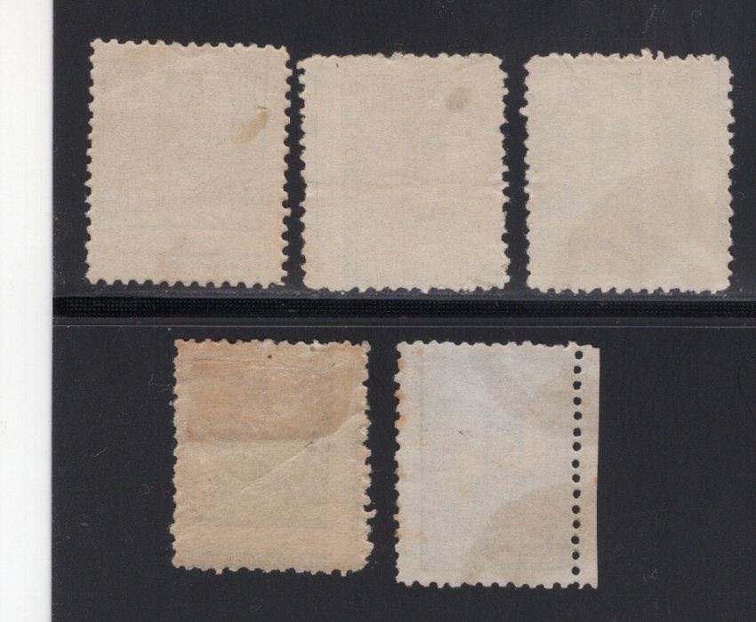 Five different misperforated 5kr green Nasser-ed Din Shah Scott # 80 one mint hinged remnant and four postally used Scott value for normal copies $49.00