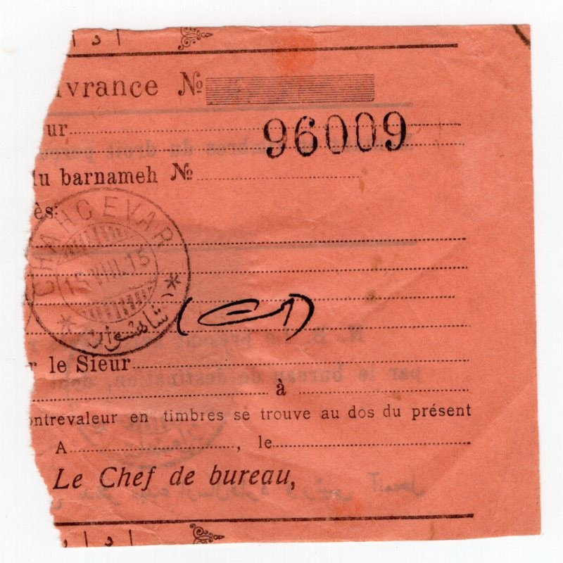 Iran 1915 Crown Parcel Post Chahcevar Postmark Waybill