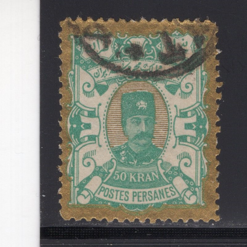 50kr green & gold Scott # 100 postally used, Signed by Mr. Mehrdad Sadri.