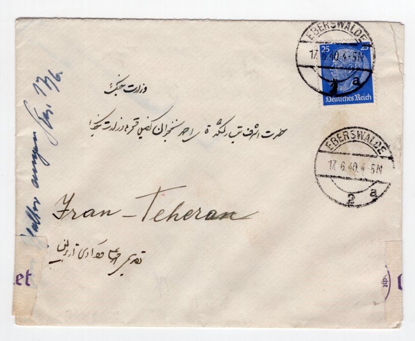 Germany 1940 Censor Label Minister War Iran