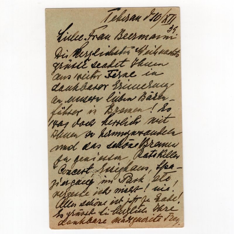 90 Dinar French text postal card Persiphila # PC58 mailed from Tehran to Bremen with crease on the side Persi value from $900.00