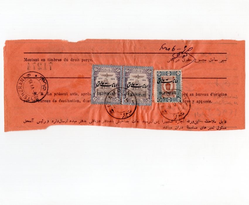Iran 1915 Crown Parcel Post Shifted Center 2 Waybill Permit