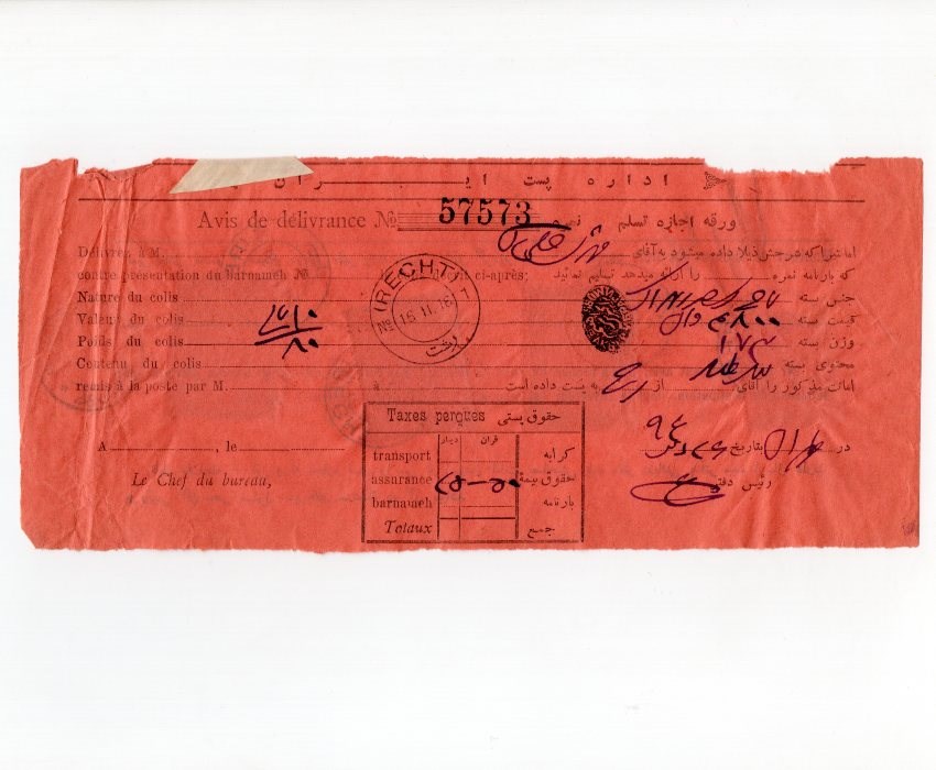 10ch with shifted up and down center on two parcel delivery permits from Recht to Tehran.