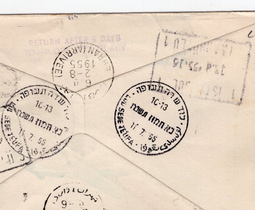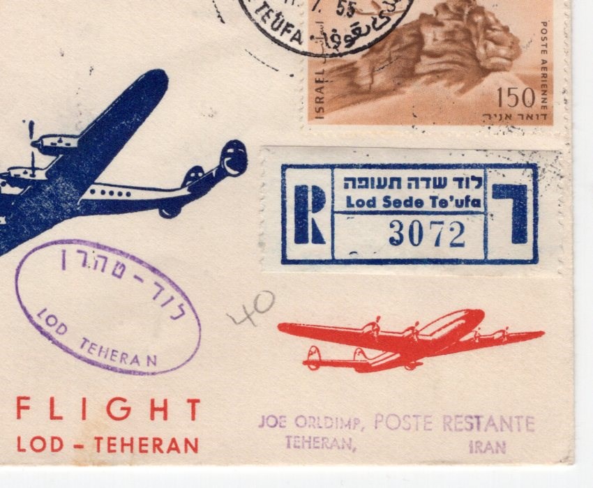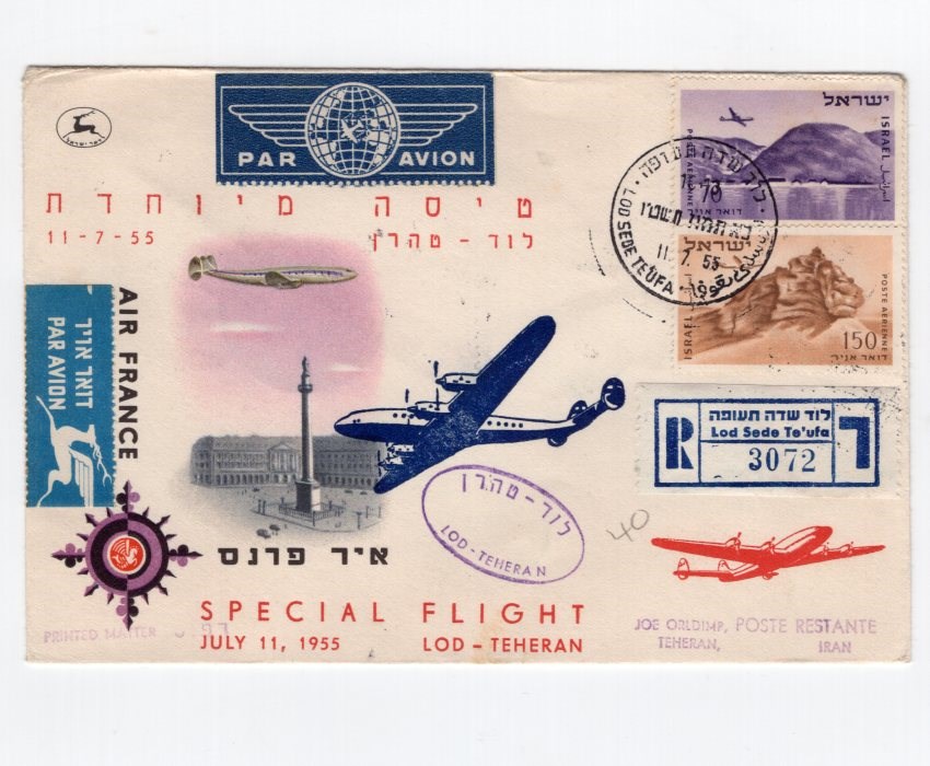 Israel 1955 Air France Cachet Special Flight Registered Iran