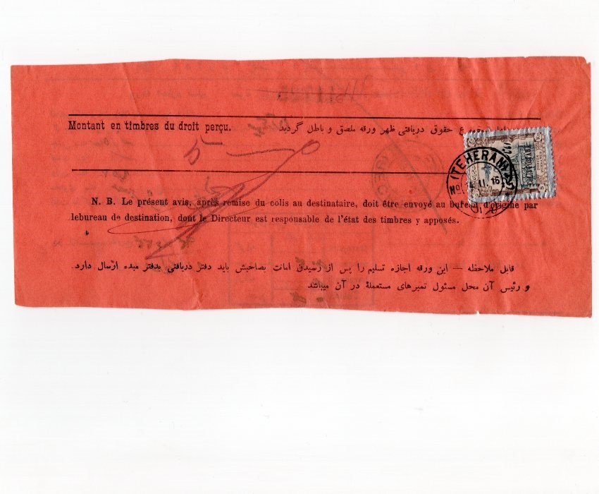 Iran 1916 Parcel Post Single Franking 5kr Waybill Permit