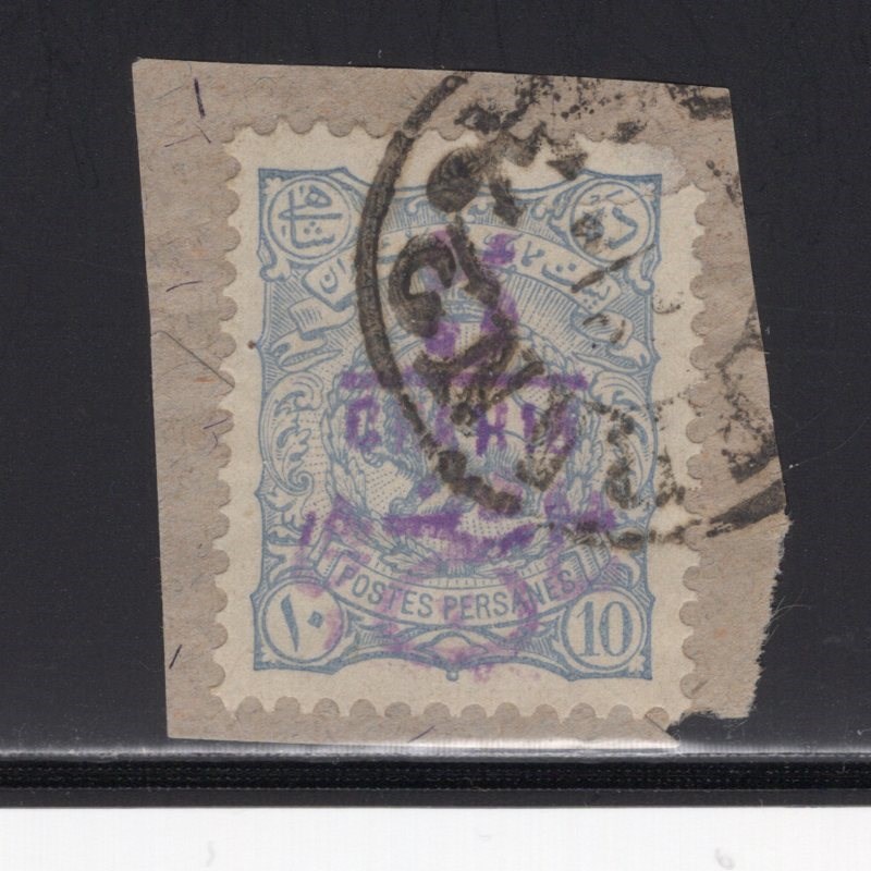 5ch on 10ch pale blue Scott # 211 postally used on piece cover cancelled in transit with Tehran arrived postmark Scott value used stamp $40.00, Signed by Mr. Mehrdad Sadri.
