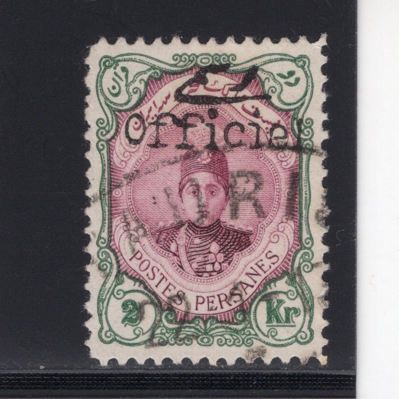 2kr Ahmad Shah Tall perf 11.5x11 overprinted Officiel Scott # 510 postally used Scott value $75.00, Signed by Mr. Mehrdad Sadri.