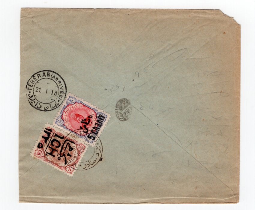 Iran 1918 Surcharge 5ch Rate Internal Cover