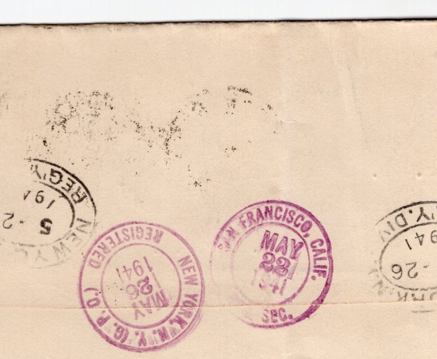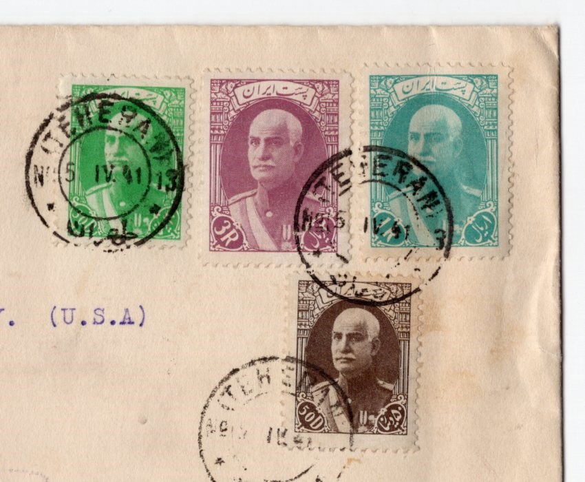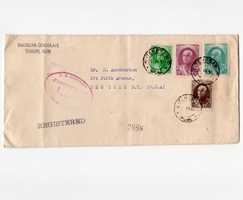 Scott # 859, 861, 865, 868 on registered cover with fold on the side mailed from America Consulate in Tehran to New York.