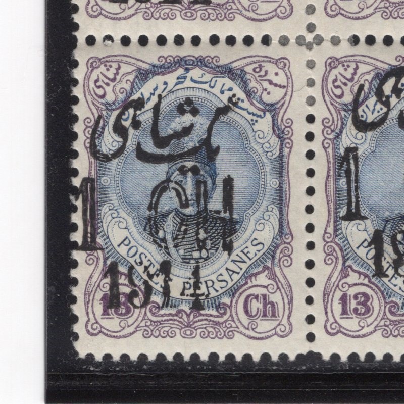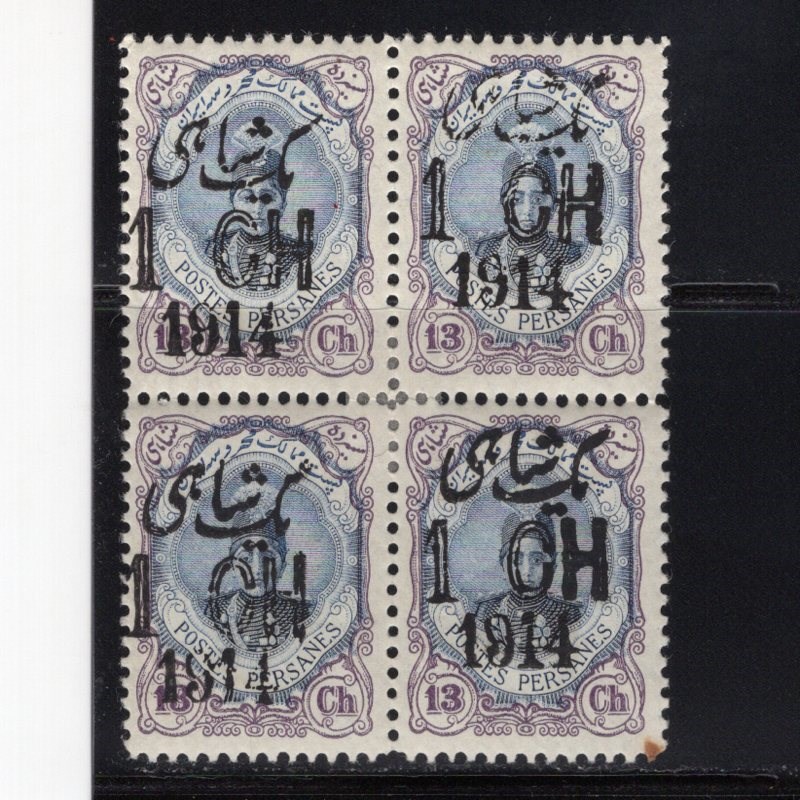 Block four of 1ch 1914 on 13ch Ahmad Shah Scott # 535 mint lightly hinged one stamp with gum crease, Signed by Mr. Mehrdad Sadri.