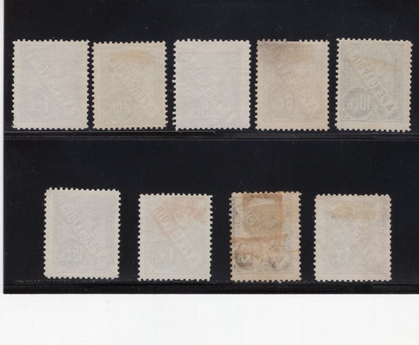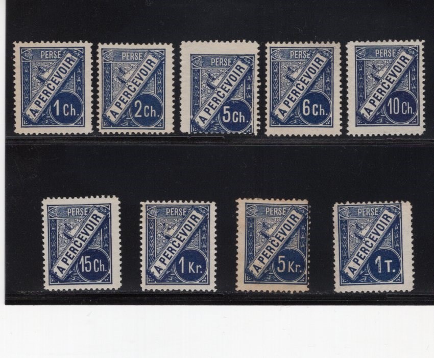 Short set missing one 2kr, nine different postage due essay Persiphila # U11-7, U19-20 mint no gum Persi value for no gum $82.00, 10ch with original gum.