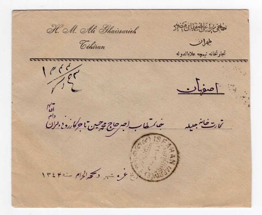 Scott # 709-11 on three cachet covers to Isfahan, pair 3ch from Chiraz, 6ch from Tehran Bazar and 9ch from Kachan.