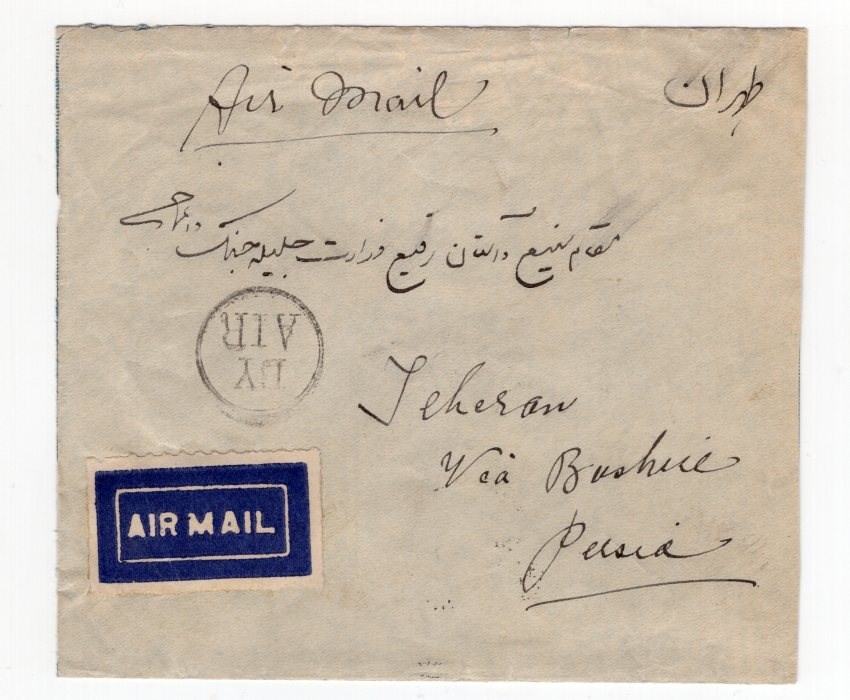 Scott # 130, 133 pair on an airmail cover from Bombay to Tehran via Karachi.