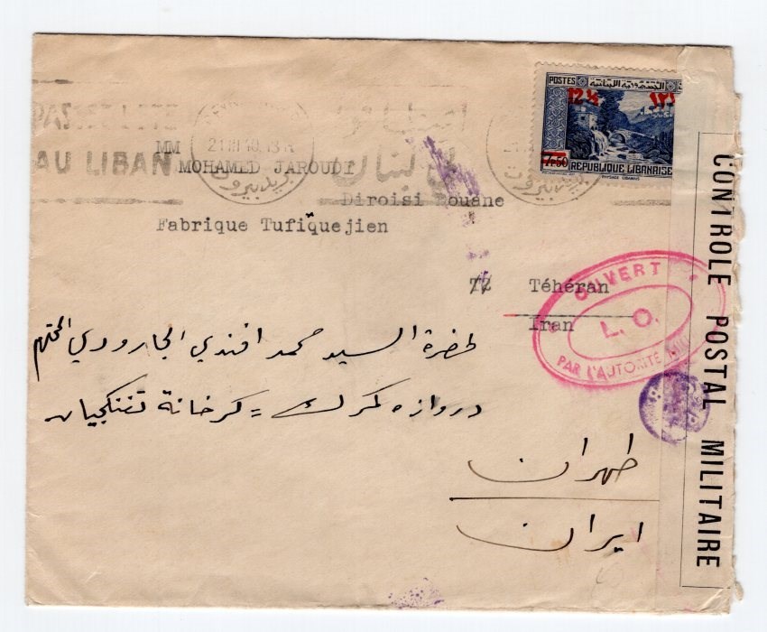 Lebanon 1940 French & Negative Censor Iran