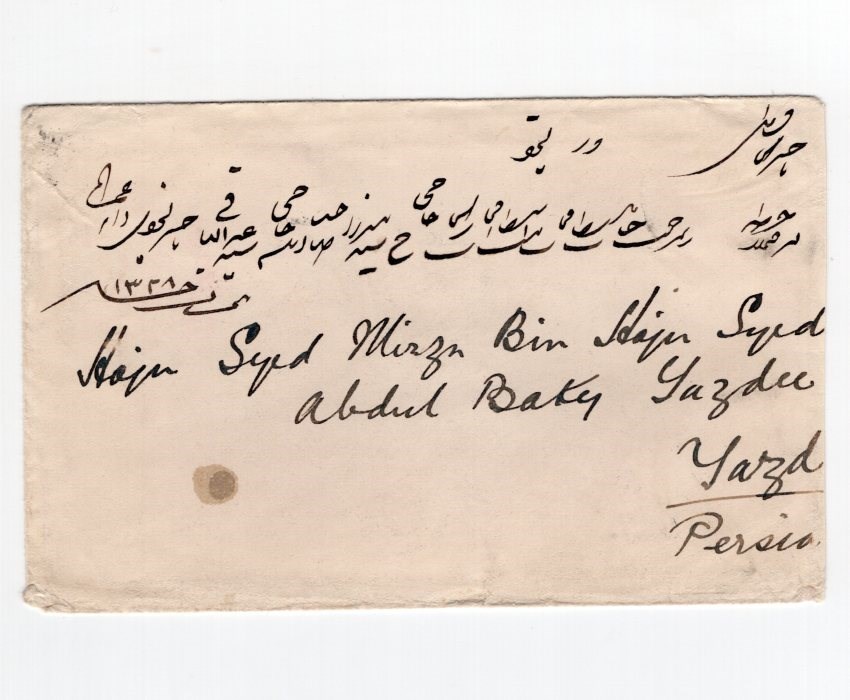 Scott # 64 on cover from Bombay to Yezd via Bushire and Abadeh.