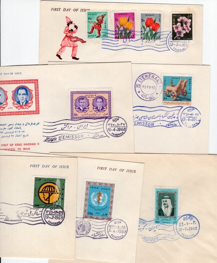 Iran 1968 Oil WHO Kuwait Art 6 Cachet FDCs