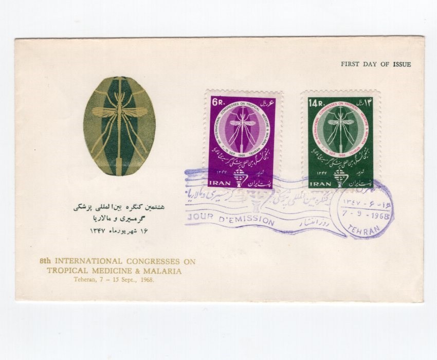 Iran 1968 Malaria Police Farah Arts Oil 5 Cachet FDCs