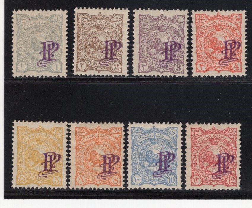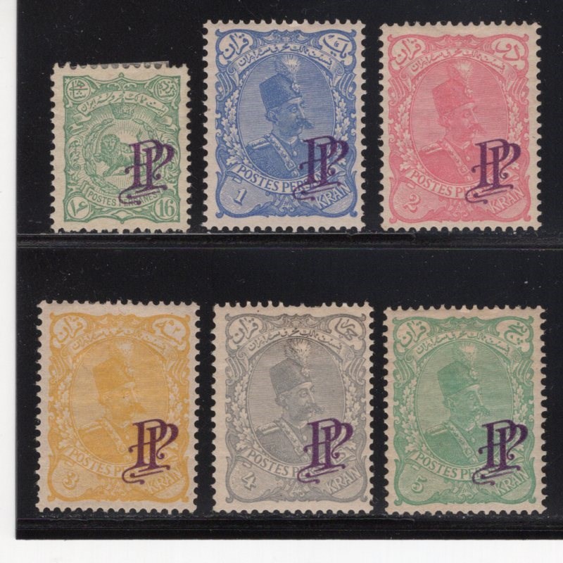 14 Different from Muzaffer-ed Din Shah overprinted PP missing 50kr Persiphila # 143-159 mint hinged remnant some Chahi value with thin Persi value for hinged $290.00