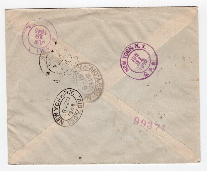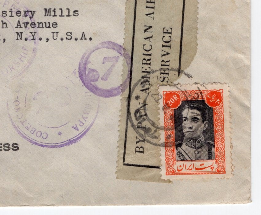 Iran 1945 Pan Am Censor 20 Rials USA