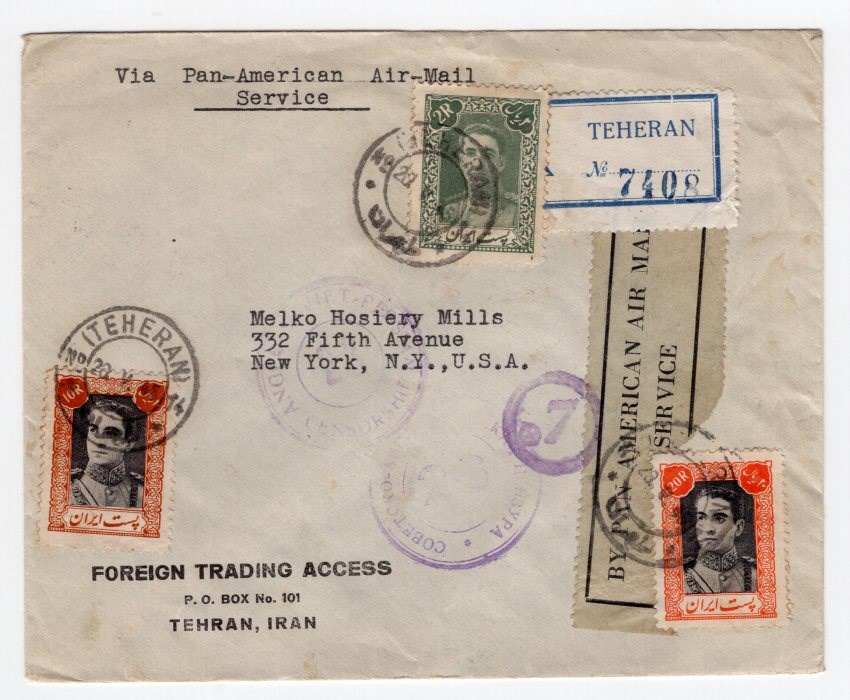 Scott # 901, 906 on registered airmail by Pan American service from Tehran to New York via Baghdad.