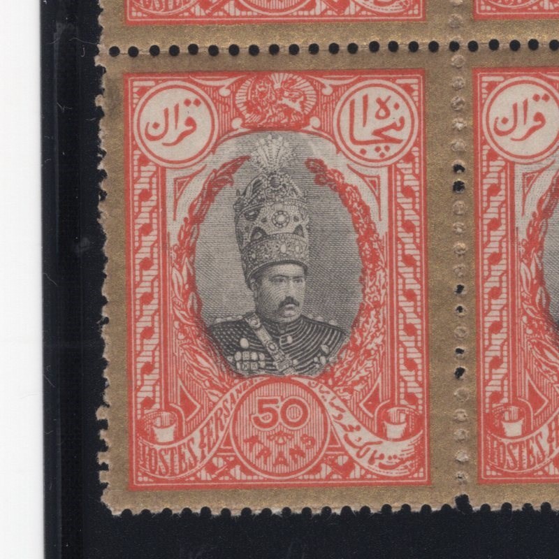 Block of four 50kr Mohammad Ali Shah coronation Scott # 445 mint never hinged Scott value for four single hinged $800.00